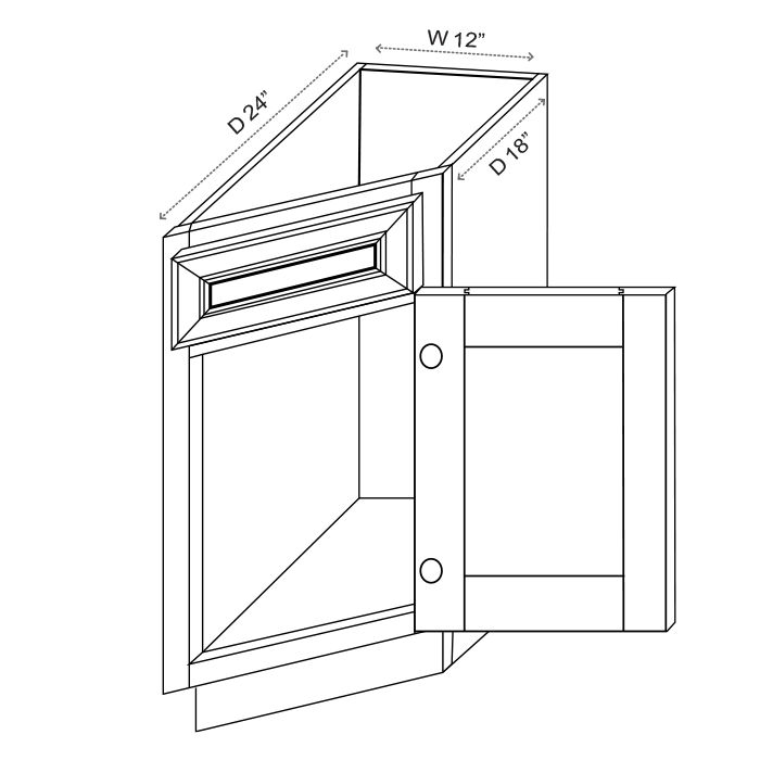 Base End Angle Right Cabinet Size Width x Height x Depth (in) 12" x 34.5" x 24"