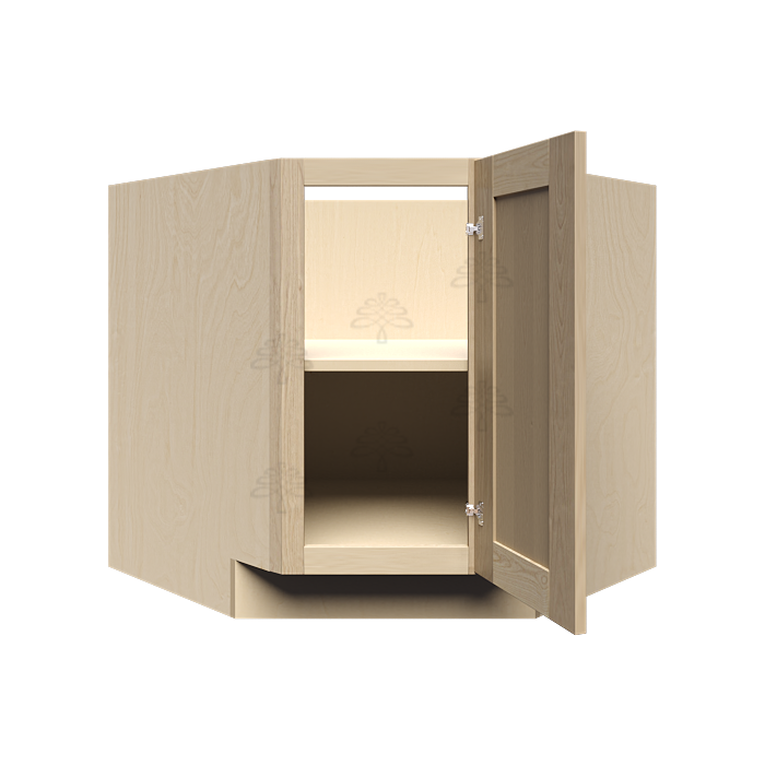 | Base Diagonal Cabinet Size Width x Height x Depth (in) 36" x 34.5" x 24" 1 Door, 1 Adjustable Shelf Note: This cabinet can also be used as a corner sink base cabinet Just by leaving out the shelf |